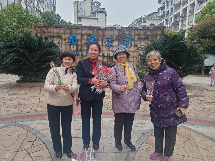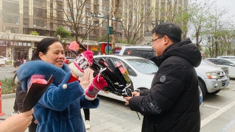 帝景豪園小區(qū)舉辦“寵愛女神”便民服務(wù)活動,給小區(qū)女性業(yè)主送鮮花、提供免費(fèi)沖洗地墊、免費(fèi)磨刀服務(wù)。