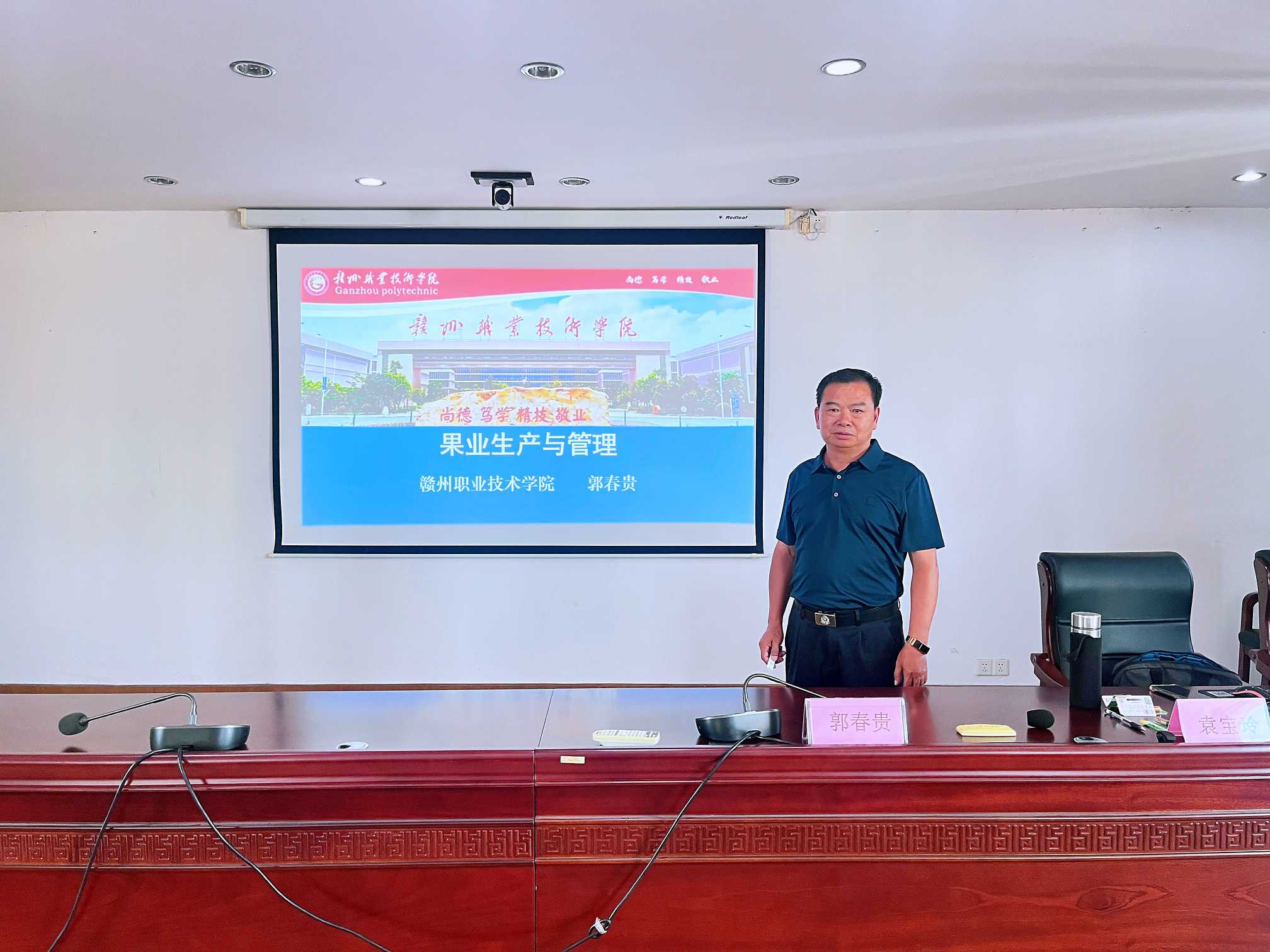 在專題講座環(huán)節(jié),學(xué)校特邀業(yè)內(nèi)權(quán)威專家授課,為學(xué)員們帶來了一場(chǎng)場(chǎng) “知識(shí)盛宴”。贛州職業(yè)技術(shù)學(xué)院正高級(jí)講師郭春貴老師,同時(shí)身兼贛州市百名農(nóng)業(yè)專家、贛州市科普大使、江西省教育督導(dǎo)專家、省科技評(píng)審專家等多重身份,他憑借豐富的理論知識(shí)和實(shí)踐經(jīng)驗(yàn),圍繞園林花卉、果樹、蔬菜生產(chǎn)技術(shù)指導(dǎo)等核心內(nèi)容進(jìn)行深入淺出的講解,幫助學(xué)員們系統(tǒng)更新理論儲(chǔ)備,拓寬專業(yè)視野。此外,信豐縣農(nóng)伯樂蔬菜專業(yè)合作社理事長(zhǎng)賴煥華也結(jié)合自身創(chuàng)業(yè)經(jīng)歷,分享了蔬菜種植管理、合作社運(yùn)營(yíng)等實(shí)戰(zhàn)經(jīng)驗(yàn),為學(xué)員們提供了接地氣的實(shí)用技巧。