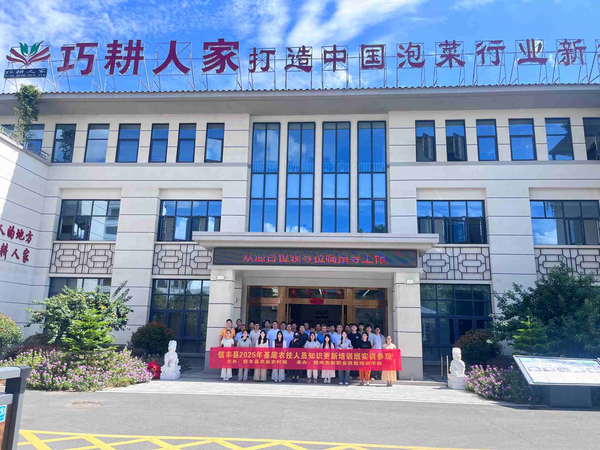 現(xiàn)場(chǎng)教學(xué)環(huán)節(jié)更是讓學(xué)員們直呼 “收獲頗豐”。在學(xué)校的精心安排下,學(xué)員們先后走進(jìn)多家知名農(nóng)業(yè)企業(yè)和示范基地,近距離學(xué)習(xí)先進(jìn)技術(shù)和管理經(jīng)驗(yàn):在贛州巧耕人家農(nóng)業(yè)發(fā)展有限公司,大家深入蔬菜種植基地和加工廠,詳細(xì)了解農(nóng)產(chǎn)品加工與銷售流程,重點(diǎn)學(xué)習(xí)了乳酸菌發(fā)酵菜腌制工藝技術(shù),掌握了提升蔬菜附加值的實(shí)用方法;在尋烏縣羊角園果蔬有限公司,學(xué)員們實(shí)地考察特色農(nóng)業(yè)種植模式,學(xué)習(xí)了特色果蔬品種選育、高效栽培等先進(jìn)技術(shù);在江西果然食品有限公司和安遠(yuǎn)縣橙皇現(xiàn)代農(nóng)業(yè)發(fā)展有限公司,大家聚焦農(nóng)產(chǎn)品加工技術(shù)與品牌營(yíng)銷,探索了從 “田間” 到 “餐桌” 的產(chǎn)業(yè)鏈打造路徑;在中國(guó)贛南臍橙產(chǎn)業(yè)園(安西)及柑橘農(nóng)業(yè)科技示范基地,學(xué)員們沿著贛南臍橙的發(fā)展歷程,學(xué)習(xí)了臍橙標(biāo)準(zhǔn)化種植、病蟲害綠色防控等先進(jìn)技術(shù),深刻感受到特色產(chǎn)業(yè)對(duì)鄉(xiāng)村振興的帶動(dòng)作用;在中科微至&江西綠萌智能裝備(華南)制造中心項(xiàng)目現(xiàn)場(chǎng),大家參觀了果蔬采后處理設(shè)備、設(shè)施農(nóng)業(yè)裝備生產(chǎn)基地,直觀了解了智能裝備在農(nóng)業(yè)生產(chǎn)中的應(yīng)用,認(rèn)識(shí)到科技賦能農(nóng)業(yè)的重要性;最后,在信豐金海農(nóng)業(yè)服務(wù)專業(yè)合作社糧油基地,學(xué)員們學(xué)習(xí)了糧油作物主導(dǎo)產(chǎn)業(yè)主推技術(shù),為今后開展糧油生產(chǎn)技術(shù)推廣工作奠定了堅(jiān)實(shí)基礎(chǔ)。