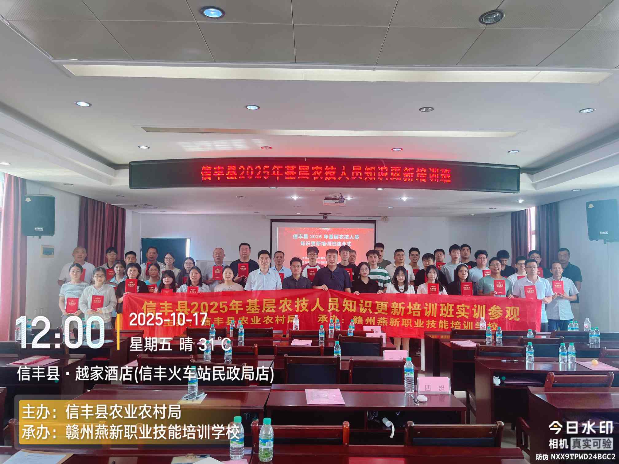 2025 年 10 月 13 日至 17 日,一場(chǎng)為期 5 天的基層農(nóng)技人員知識(shí)更新培訓(xùn)班在信豐縣順利開展并圓滿收官。本次培訓(xùn)由贛州燕新職業(yè)技能培訓(xùn)學(xué)校精心組織,不僅為當(dāng)?shù)剞r(nóng)技推廣人員搭建了專業(yè)提升的平臺(tái),更成為推動(dòng)信豐縣農(nóng)業(yè)高質(zhì)量發(fā)展、助力鄉(xiāng)村振興的生動(dòng)實(shí)踐。
